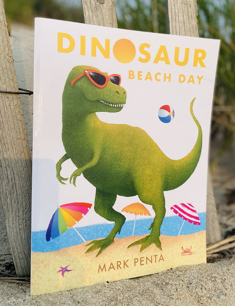 Featuring over 14 colorful illustrations, with different dinosaurs on every page doing beachy stuff, accompanied by funny rhymes that I wrote. It’s a traditional 32-page children’s book, sized 8.5×11″, printed on beautiful heavyweight glossy paper. Self-published, sold exclusively through me, $25 per book, includes shipping. To buy copies, please contact me via email and put “dino book” in the subject line. I accept Venmo.